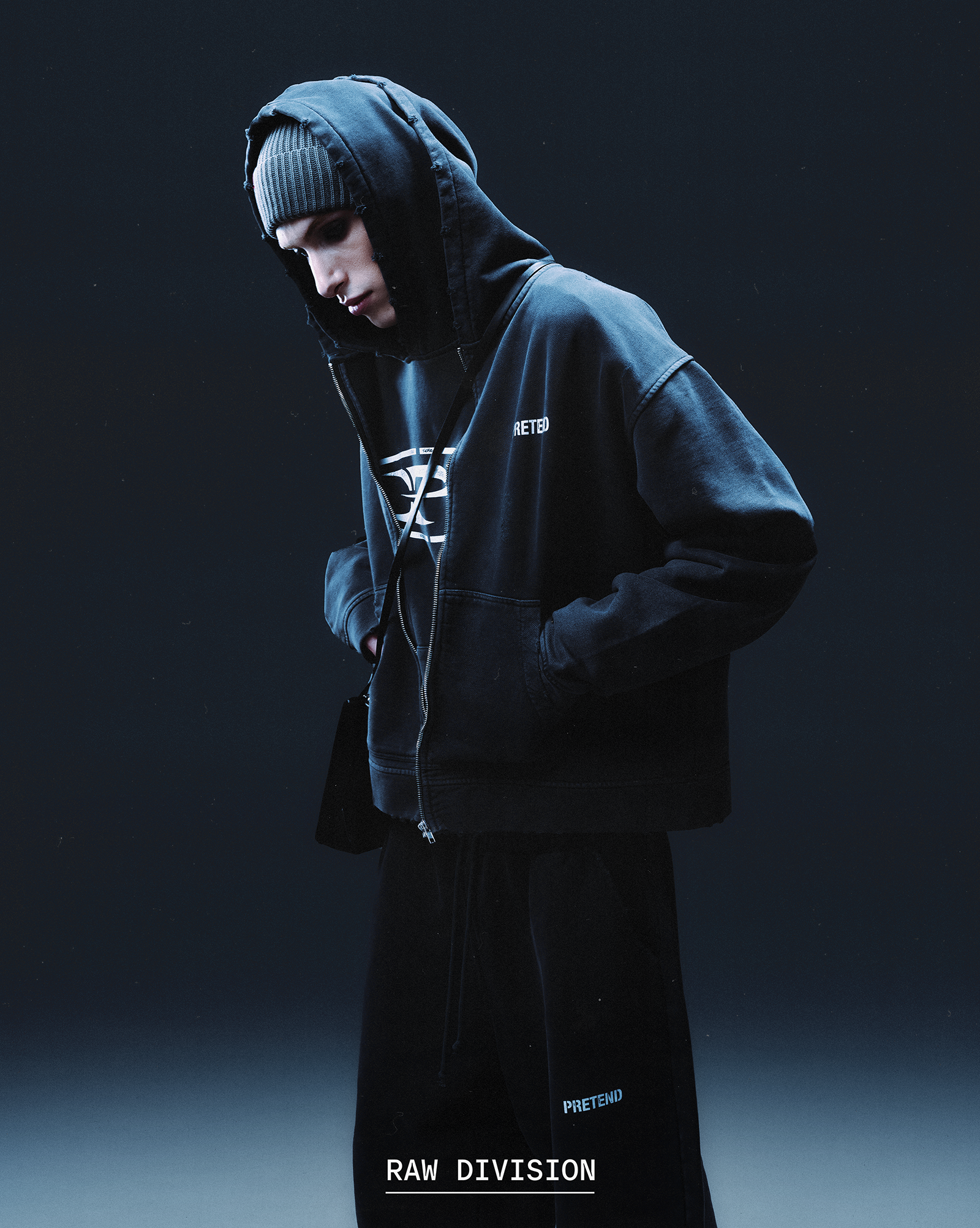FADED RAW ZIP HOODIE