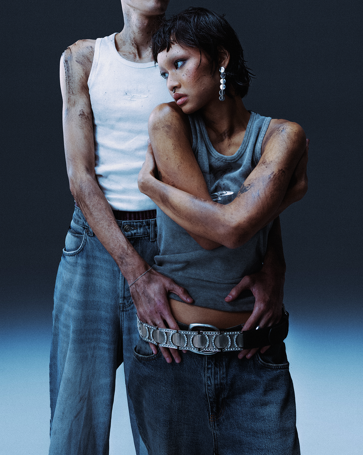 FADED RAW ZIP HOODIE - DARK DENIM BLUE