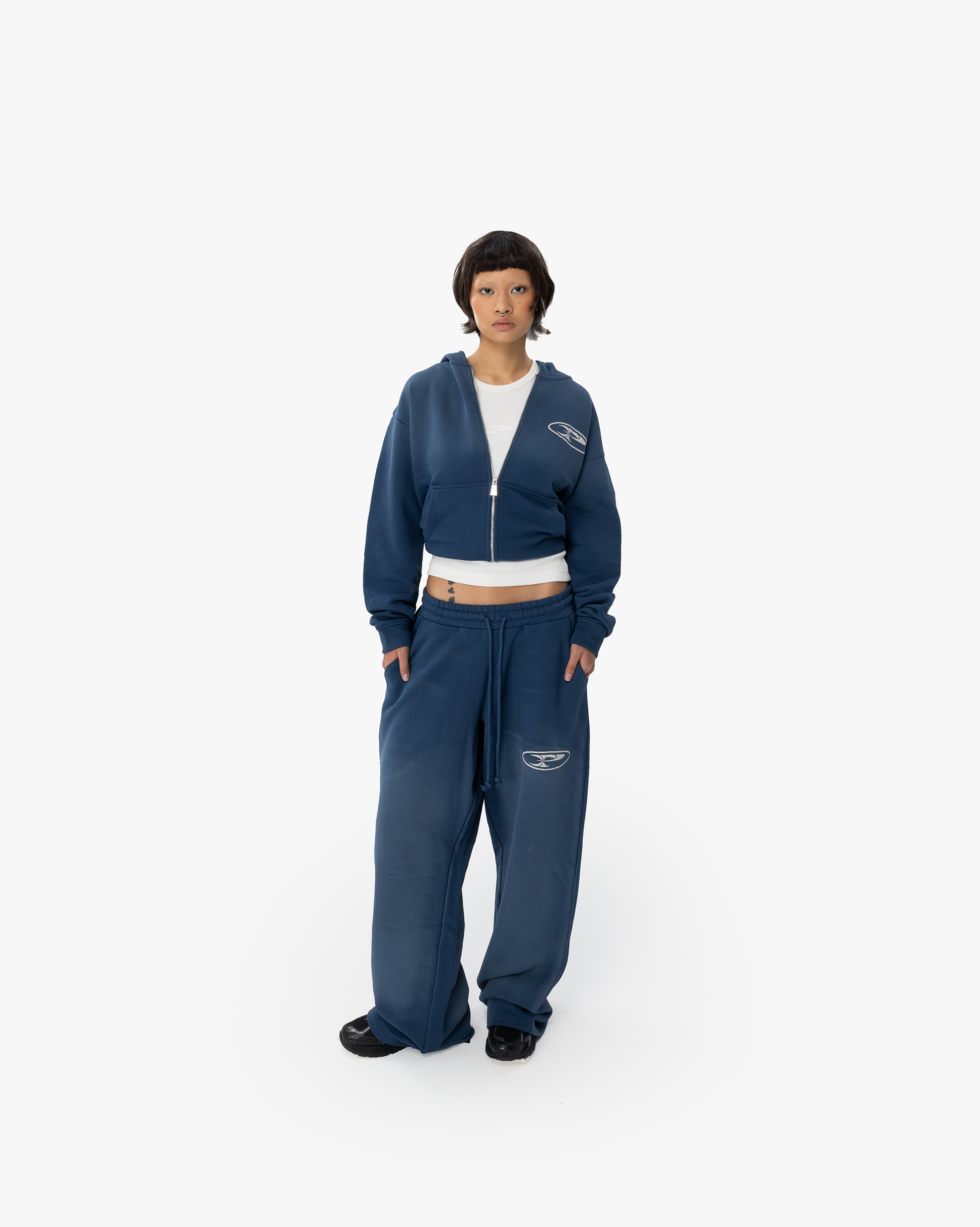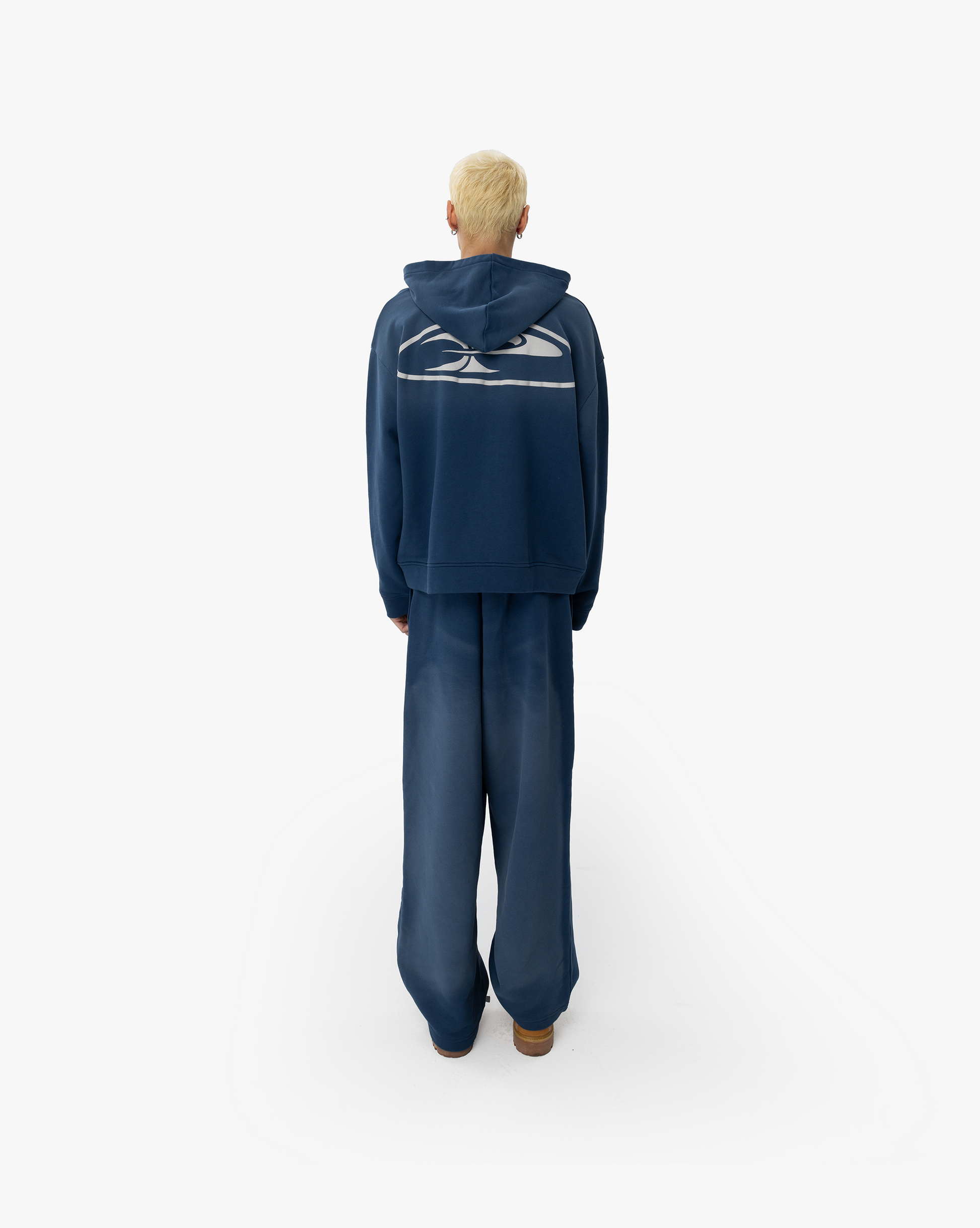 FADED RAW ZIP HOODIE - DARK DENIM BLUE